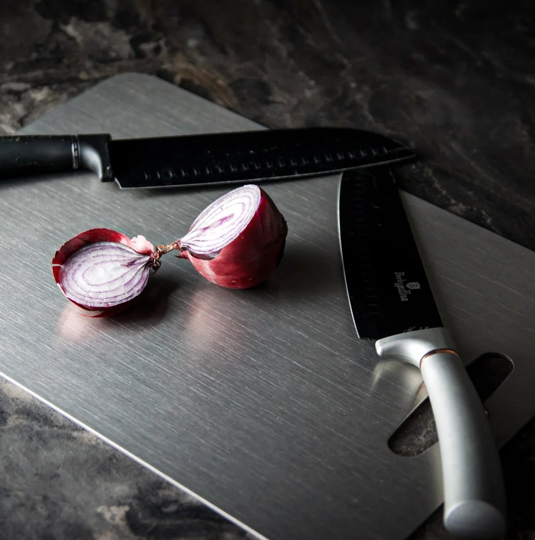 Experience cutting-edge kitchen tech with the KitchenMaiden titanium cutting board. Trusted in aerospace, titanium offers unmatched durability, a sleek, antibacterial surface, and resistance to scratches, odors, and stains. Its resilience prevents bacteria-prone grooves, ensuring safe, clean prep every time. Lightweight, warp-resistant, and knife-friendly, it’s the perfect choice for chefs who demand precision and longevity.